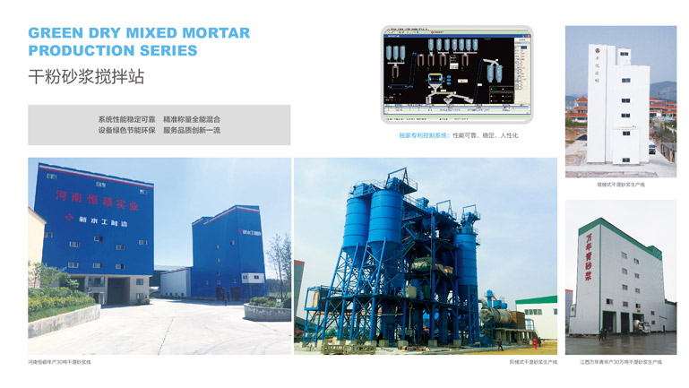 新水工自主研發的干混砂漿機械設備,可用于普通砂漿和特種砂漿的生產使用,主要有塔樓式,站立式,組合式、階梯式和實用式干混砂漿機械設備,同時還可以針對用戶的需求,進行特種砂漿生產線非標定制,建廠周期短,出效果快。